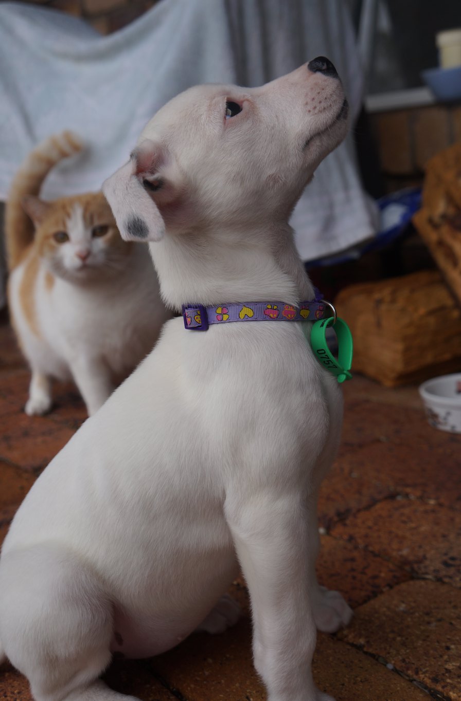 I have come out of my shell since recovering. I am a quick learner, I love stimulation. I am an adventurous young lady who loves exploring my surroundings. Other things I adore are cuddles, sunbaking, playing with dogs and cats (when they're in the mood), playing and learning.
