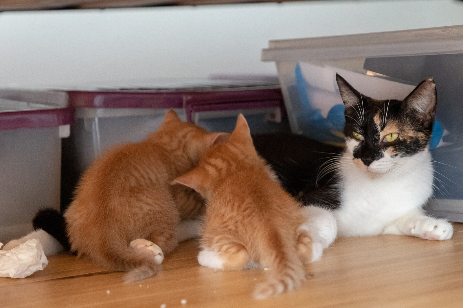 ABOUT ME" Hi I'm Layla and I'm a purr angel without wings!! I am Mum to a litter of gorgeous kittens (Dino, Oliver Brown, Prince Harry and Chuck Norris - all up for adoption) and being a Mum has been tiring. I am one sweetheart cat who loves nothing better than cuddling with my foster carer and relaxing.My favourite pastimes when not running after my kittens are playing, cuddling and snoozing.