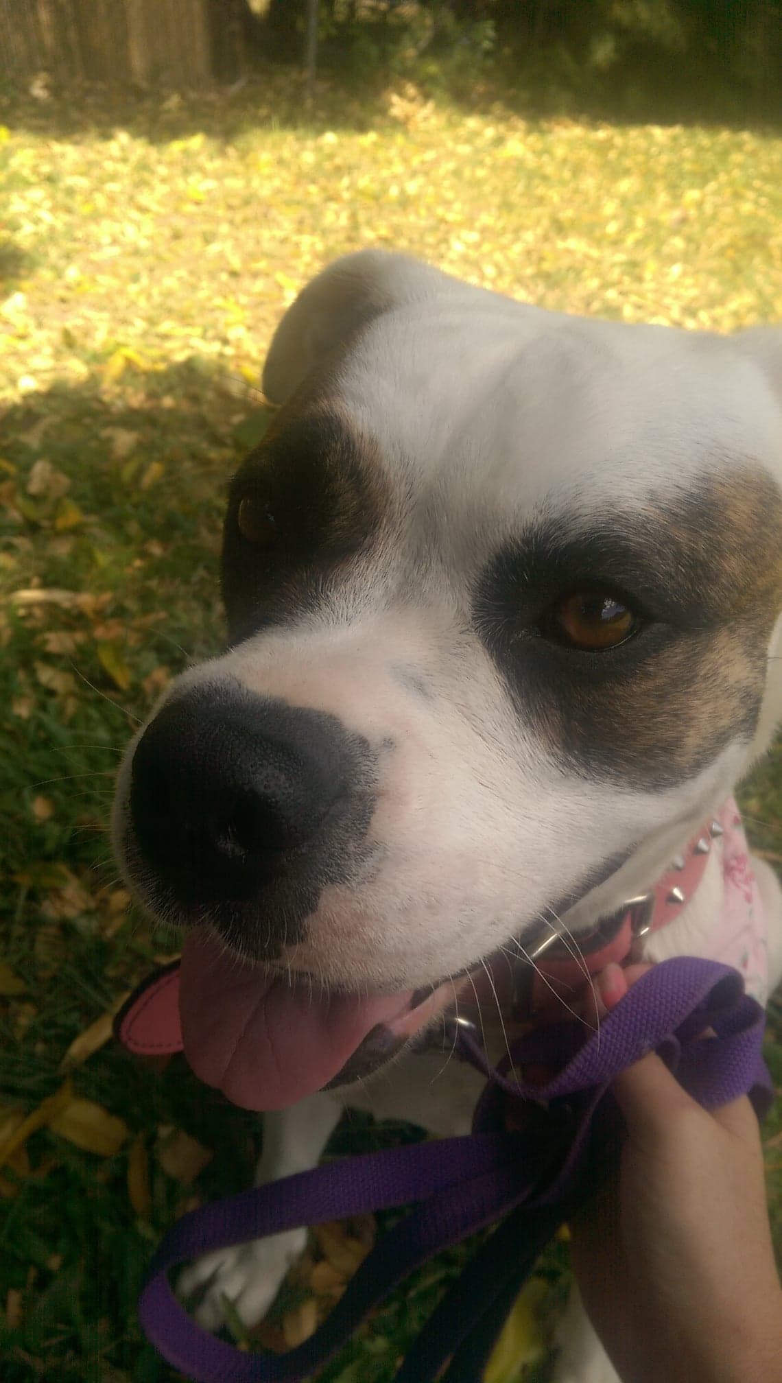 Lola is a funloving, friendly natured well behaved Australian Bulldog who loves to play. She's very energetic and has a healthy appetite. She is great with other dogs and children, we also have a cat and she's still learning to be friends with her and to share her space. She is an excellent guard dog and very protective and loyal to those around her.