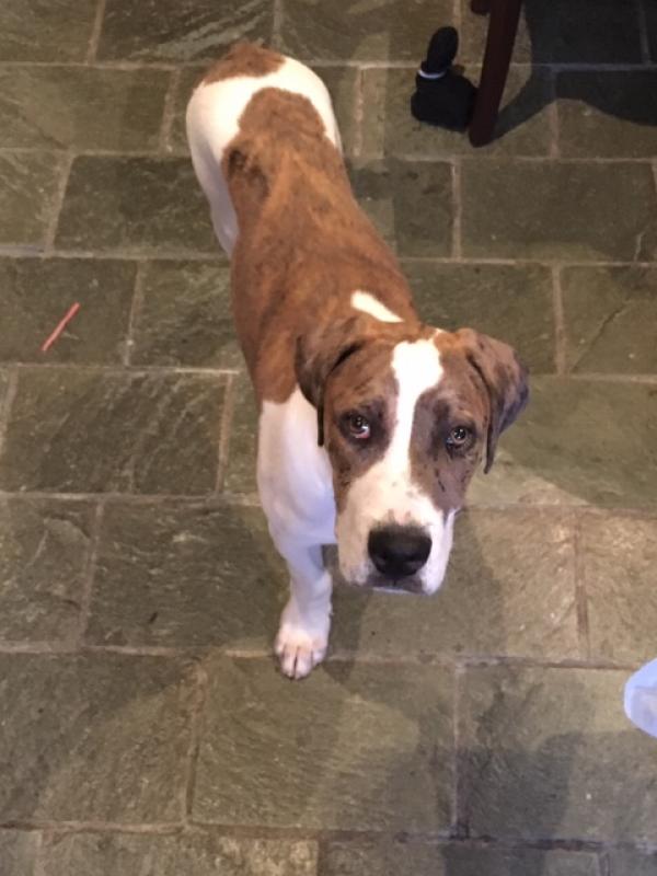 Colby is a very shy but also very sweet boy who just likes to be around people constantly, following his carer everywhere and laying in whatever room she is in. At the moment he is very quiet and as such is being walked much as he is still scared of his new surroundings, but would need someone who has the time to spend with him and make him feel comfortable, and eventually get him out and walking and around other dogs. He has lived with dogs previously, and has used them as comfort, so would not be against going to a home with another dog. He is now by himself with his carer, to try and help build his bonds with people. He's is a beautiful and lovely natured dog.