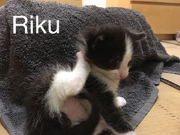 Hi I'm Riku and I love adventure! I love exploring and seeing what all the fuss is about in just about everything. I am just super chilled about life. I live with my sister Aiko and other kitten foster buddies at my foster carers home. I am a typical kitten - love pats, cuddles, playing, humans and love and adventure! Did I mention the thing about adventure?