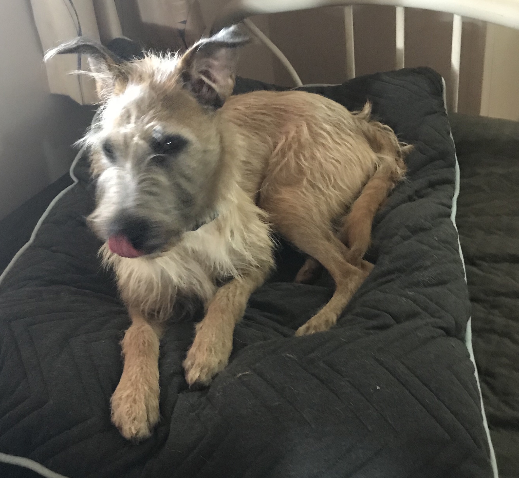 Jimmy is a golden scruffy boy, and just so sweet and lovable. He is simply a dead set rock star! Jimmy is extremely popular with all of the dogs, and loves to play chasey, and play wrestling games. He is a sensitive guy, who needs a very safe, secure and loving home, lots of cuddles and sensitive humans who can calmly reassure him and love him up. In return he will reward his family with great charm and devotion. Jimmy walks well on the lead and is also great off lead on his bush walks. He likes to sleep on the bed, and is so sweet the way he comes and asks to get up, then springs lightly up onto the bed and settles in for a snuggle. His bearded face is so gorgeous he also gets lots of kisses too. He is happy to have quiet time at home while his human is out, and is very trustworthy inside -extremely well housetrained and not at all destructive. If left inside he will usually retire to the bedroom and stretch out on the biggest bed he can find for a nice nap!