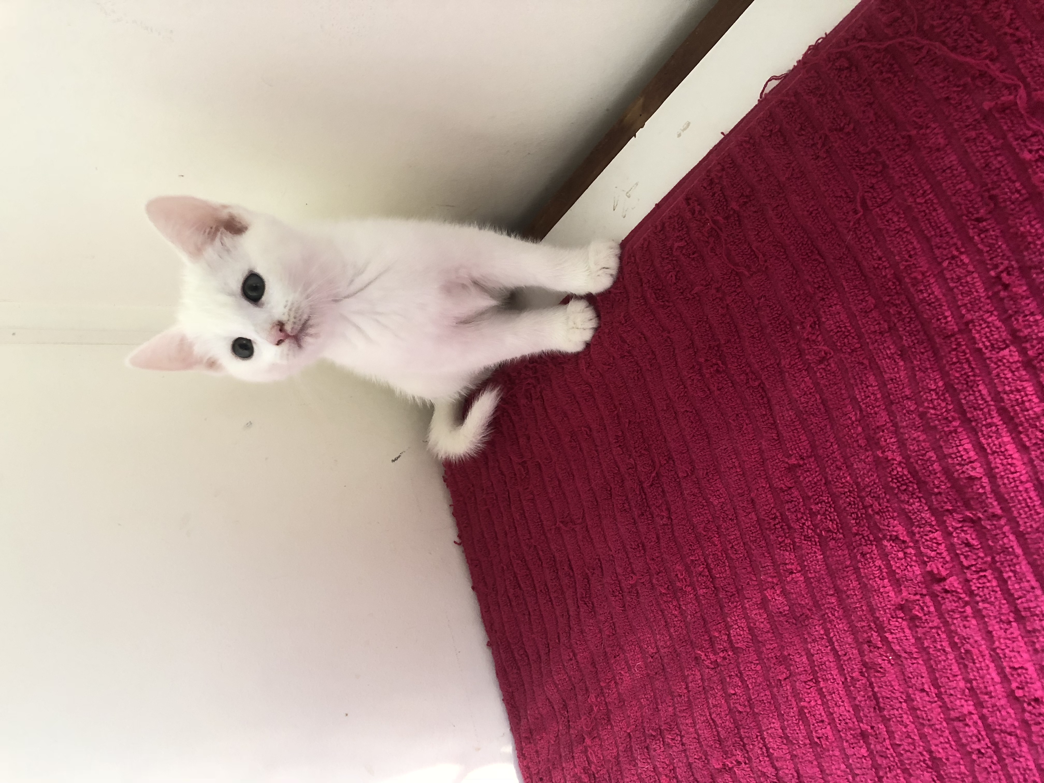 Collette is a pretty white kitten, full of life. She's a cheeky little girl always wanting to play, but enjoys her cuddles in between play time.