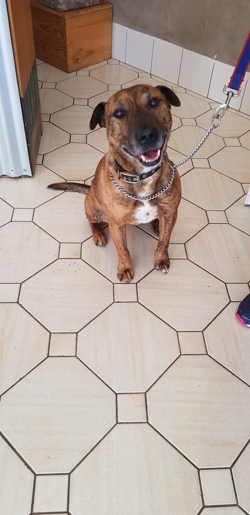 My name is Ada. I am a Staffy X and I am about 6 years old, with a muscly build. I am tan/brown/white in colour and have a similar appearance to a tiger. I am currently living with an older Labrador who is 12 years young and get along well with her. I get along well with other dogs and humans that I meet in the park. I am not sure if I am friendly with cats as I haven’t encountered one as yet.