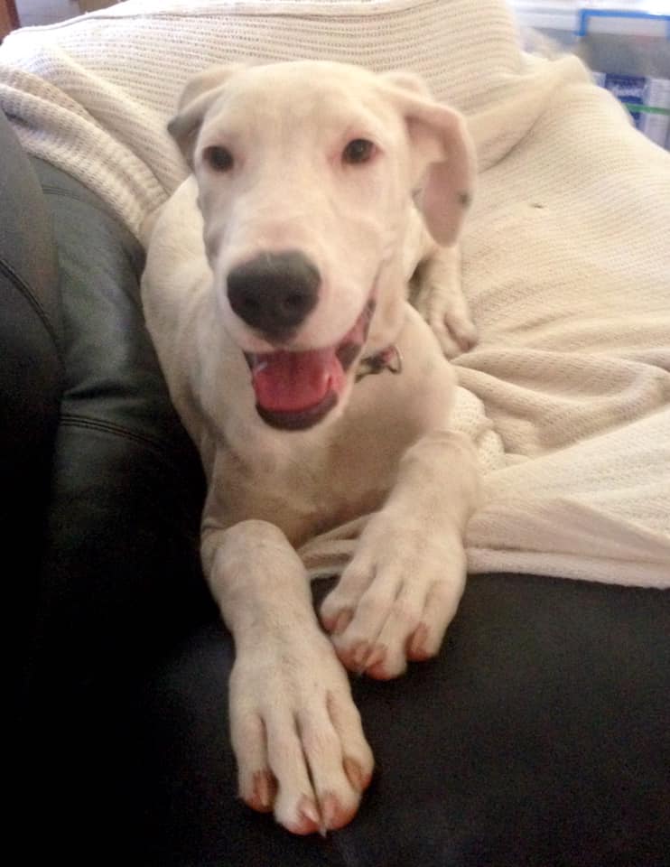 This girl can celebrate her birthday on 20 June each year. She is a Bull Arab cross and has the most impressive set of ears (she could challenge the Flying Nun) and a tongue to match.