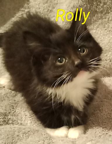 Hey, I'm Rolly and how could you go past me?? I'm a sweet, gorgeous little purr machine, affectionate and, oh boy! do I enjoy my snuggles! I'm a delight to watch, very playful and fun-loving, wrestling with my siblings. And what about my stupendous, pawsome looks, with my fluffy tux, cute little white paws and long white whiskers...I'm adorable and I know it, la-la-laaa.. ;)