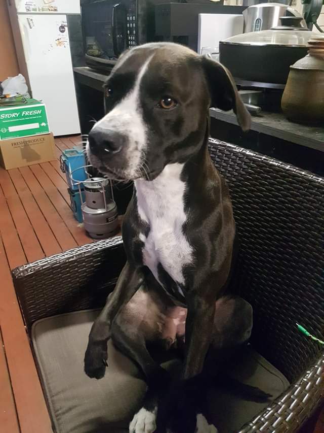 When she was a pup her mum chewed her toes off one of her feet, but that's OK because just recently she has had a custom made prosthetic paw for her so she can run around on all 4s instead of 3. She is doing well in foster care and sharing with another dog. She is learning to walk on the lead.