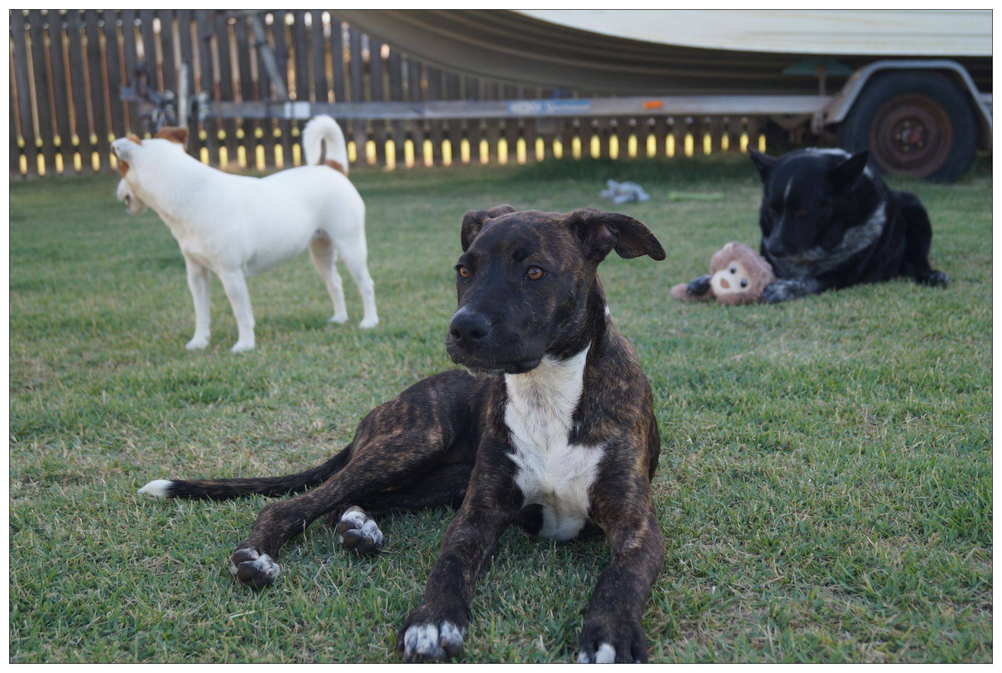 This lovely lady is a bright, engaging puppy with plenty of smarts and loads of trainability. She loves hugs, but of course also loves toys and fetch! She has a beautiful stable personality and is around 13 kg as of Nov 19 so going to be the perfect size for outings without needing a truck to cart her! If you're looking for a delightful youthful puppy girl then she's the one.