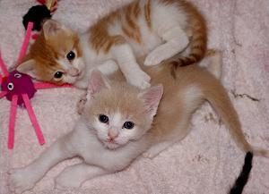 the ginger/white and cream/white are 2 very pretty boys. They are available seperately or together. They will be ready for their forever homes in late march/early april but we are taking enquiries now!