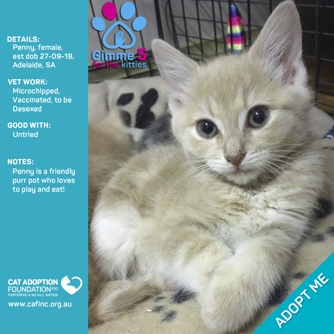 Donate to Penny at Cat Adoption Foundation Incorporated via Shout