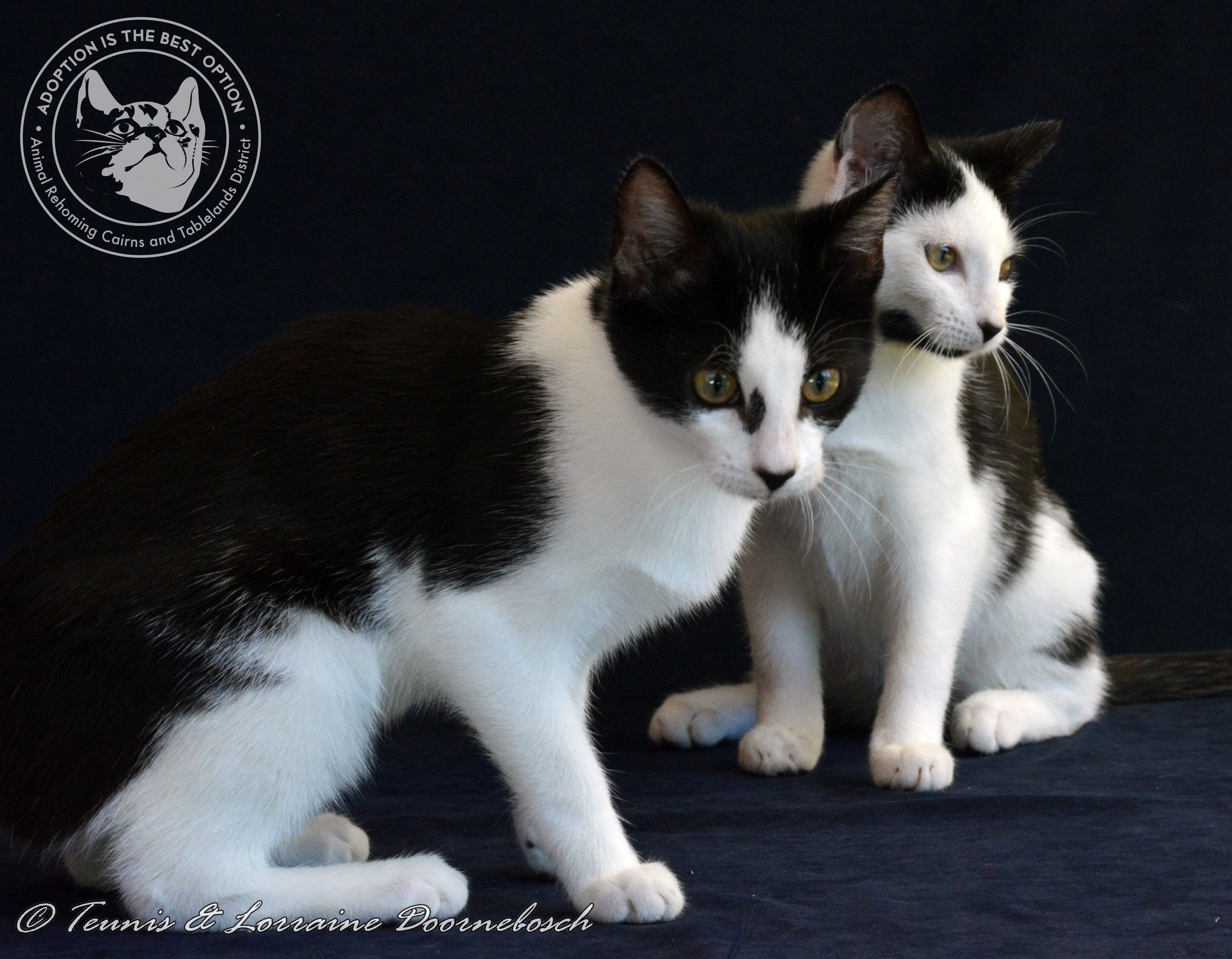 Tibbie & Twisty were born 02.05.18. Their mum is the lovely Matilda who has passed on her beautiful nature to her babies. These girls are very fond of each other and we would like them to stay together, especially since little Tibbie has recently undergone major surgery to remove her front left leg which became so seriously infected after a green fracture that both Southside and Ulysses Vets agreed there was no way to save her without amputation. Tibbie has recovered as though nothing has happened to her and they are both playing together as they always have done. They are both small girls with the sweetest natures. Love their cuddles and affection just as much as play times. All their vet work has been done and includes desexing, microchip, vaccination, flea and worm treatment. They are In foster care in Cairns.