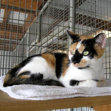 Polly is a very striking looking cat, whitest white and brightest colours, with beautiful green eyes. She is very friendly and affectionate. Because we are close to the nsw/qld border, our cats can go to either state