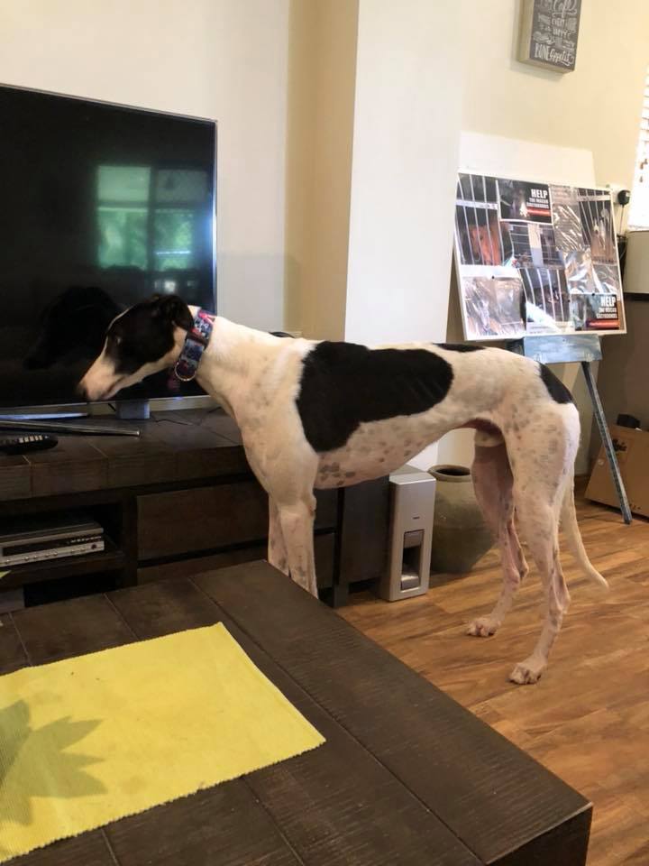 Harry was born 29.04.16. This young greyhound is just amazing. He is currently learning how to respond to ' clicker training ' and is doing really well. Not only is Harry huge but he is smart too. He is going to be a wonderful addition to a family who will continue training him because he is eager to learn and please. Harry was born into the greyhound racing industry however, due to injury, he was retired and is now preferring life as a pet.