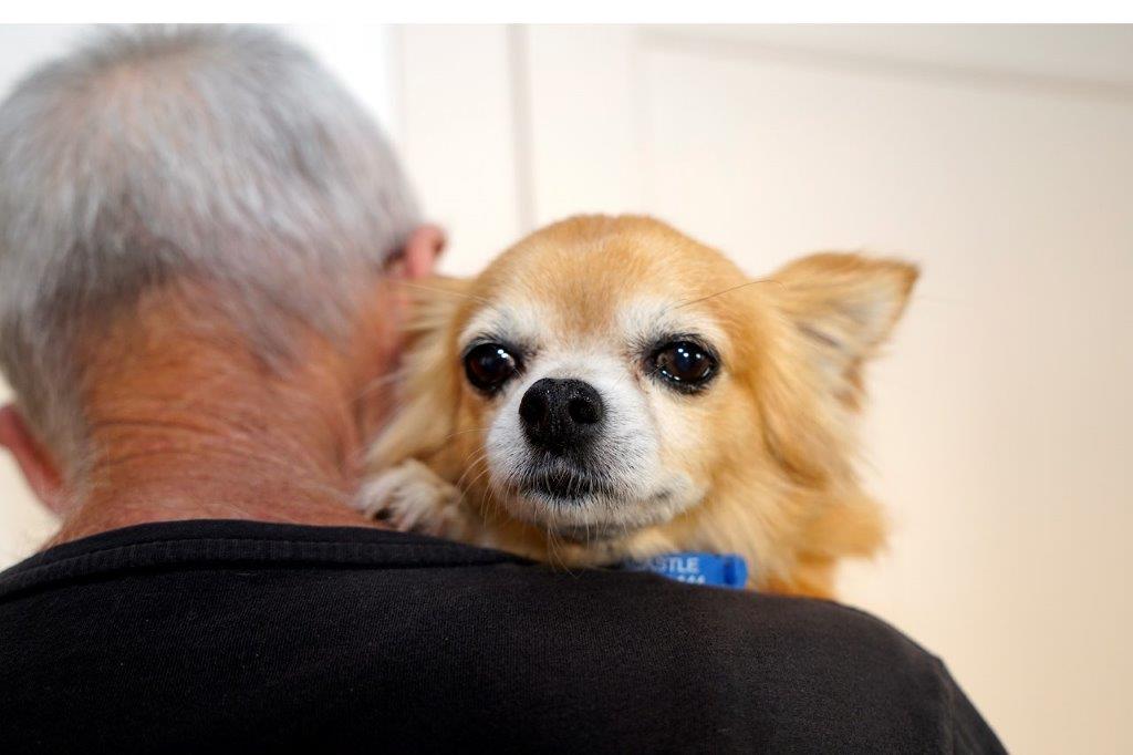He is jealous of his (rightful) position on the Boss Lady’s lap and occasionally shows a bit of verbal aggression to any others who might wish to usurp his throne. In the short time he has been in care, he has bonded closely with the Lady of the House. He is her shadow; where she goes, he goes – two doggy steps behind.