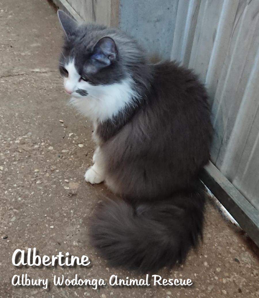 She needs a quiet home and she may take a while to settle in. Someone with a bit of experience with shy cats would be her choice of home. Albertine has slowly come out of her shell and is now a loving smoochy cat.