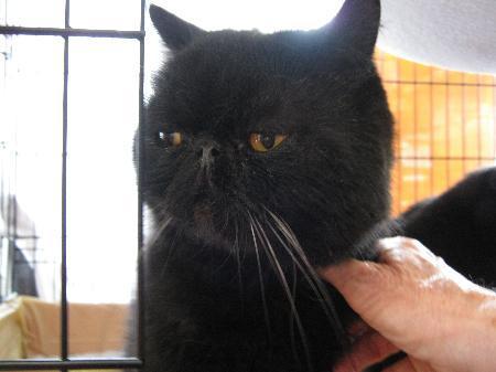 Blackie is very easy going, friendly to other cats & dogs, loves to have his short thick coat brushed. He would love to go to a new home with his brother sambo. Like his brother, blackie is very handsome, and aptly named with his pitch black, shiny coat