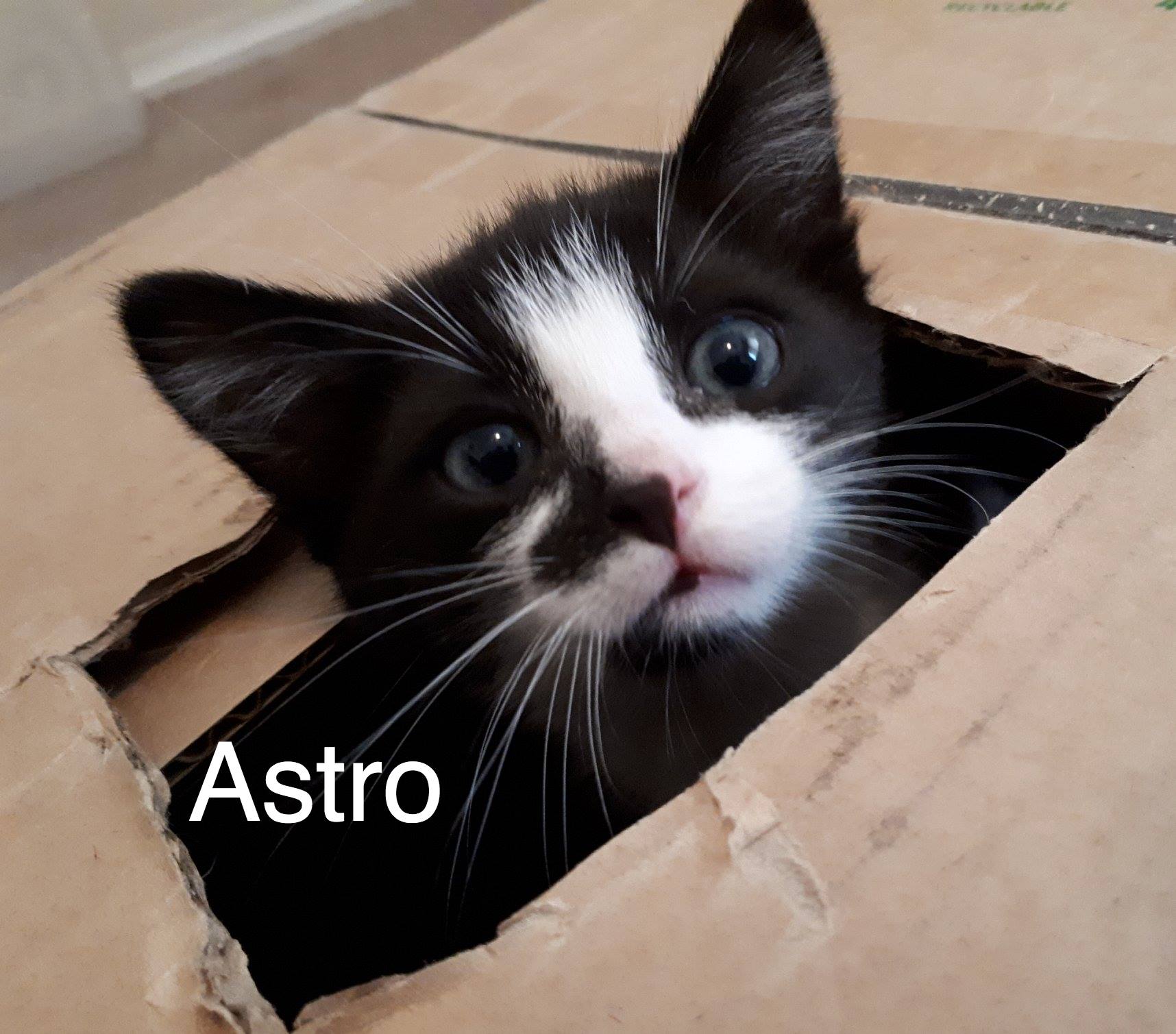 Astro is just like the Energizer Bunny, he is either going flat out, or he is flat out sleeping. Currently in care with his brother and sister, Astro is a non stop bundle of fun. Astro came into care when his mum gave birth to her litter in a backyard BBQ and has done very well since then. Astro is currently fostered with other adult cats and with "cat friendly" dogs with no problems. He enjoys his food, back scratches, loves toys and games, and purrs his head off when patted. He is just starting to realise that "laps" are good places to be.