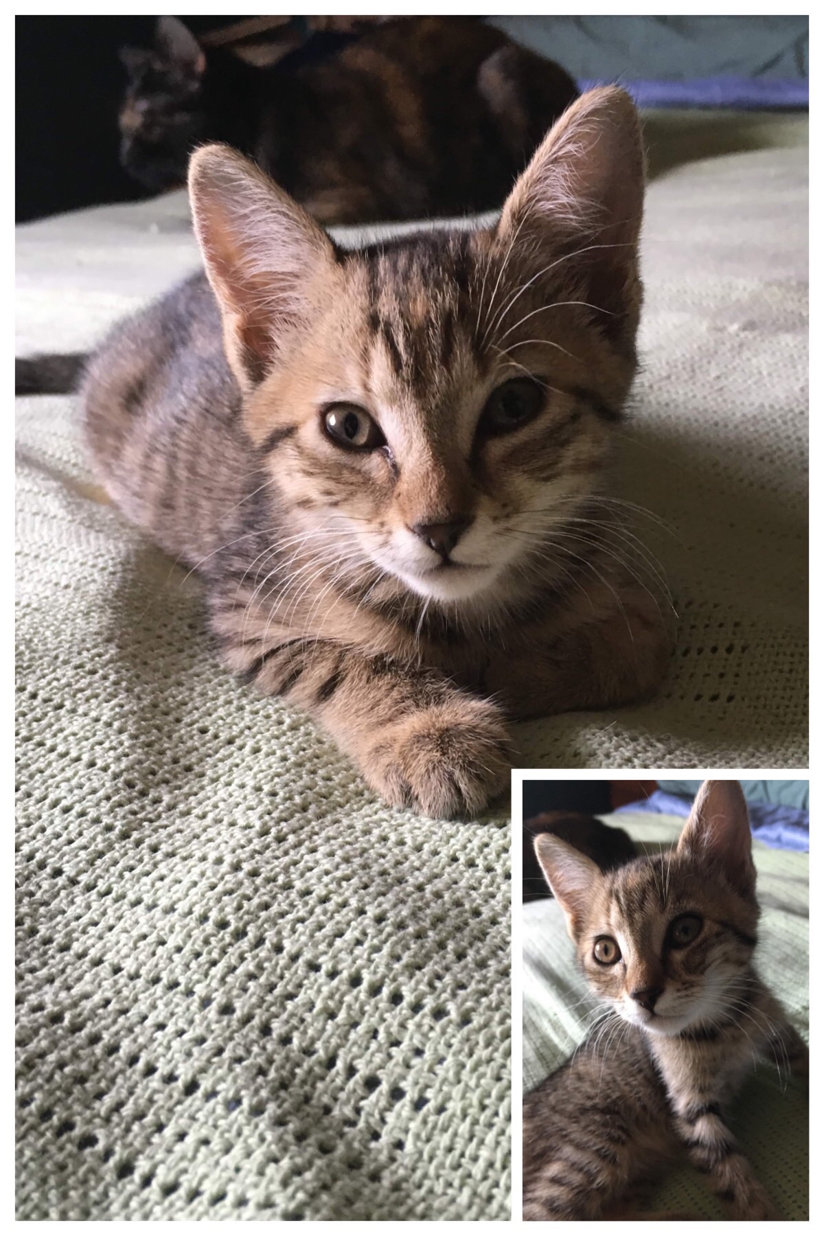 💗 Hi, my name is ROXY! Now I may look tabby, but I have ginger tips through my coat and I have a lovely apricot back paw! I’m very beautiful, just like my siblings. I’m never far away from my carer and love lots of cuddles. I am an instant purrer and play well with my other kitty cat friends.