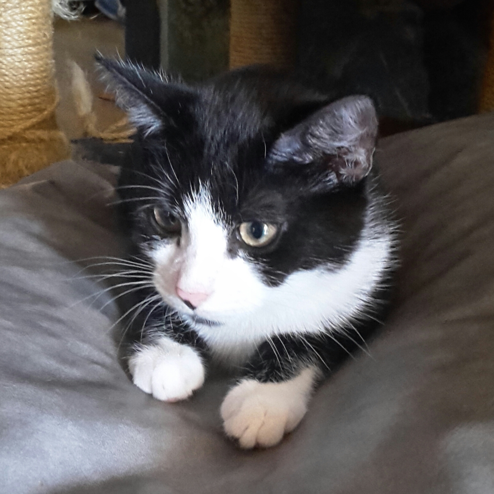 I am playful and cheeky and love to run around inside. I have been brought up with children and other animals.I have a lot of energy and love to chase balls and other toys. Although I can entertain myself I love to play with humans rather than other cats.