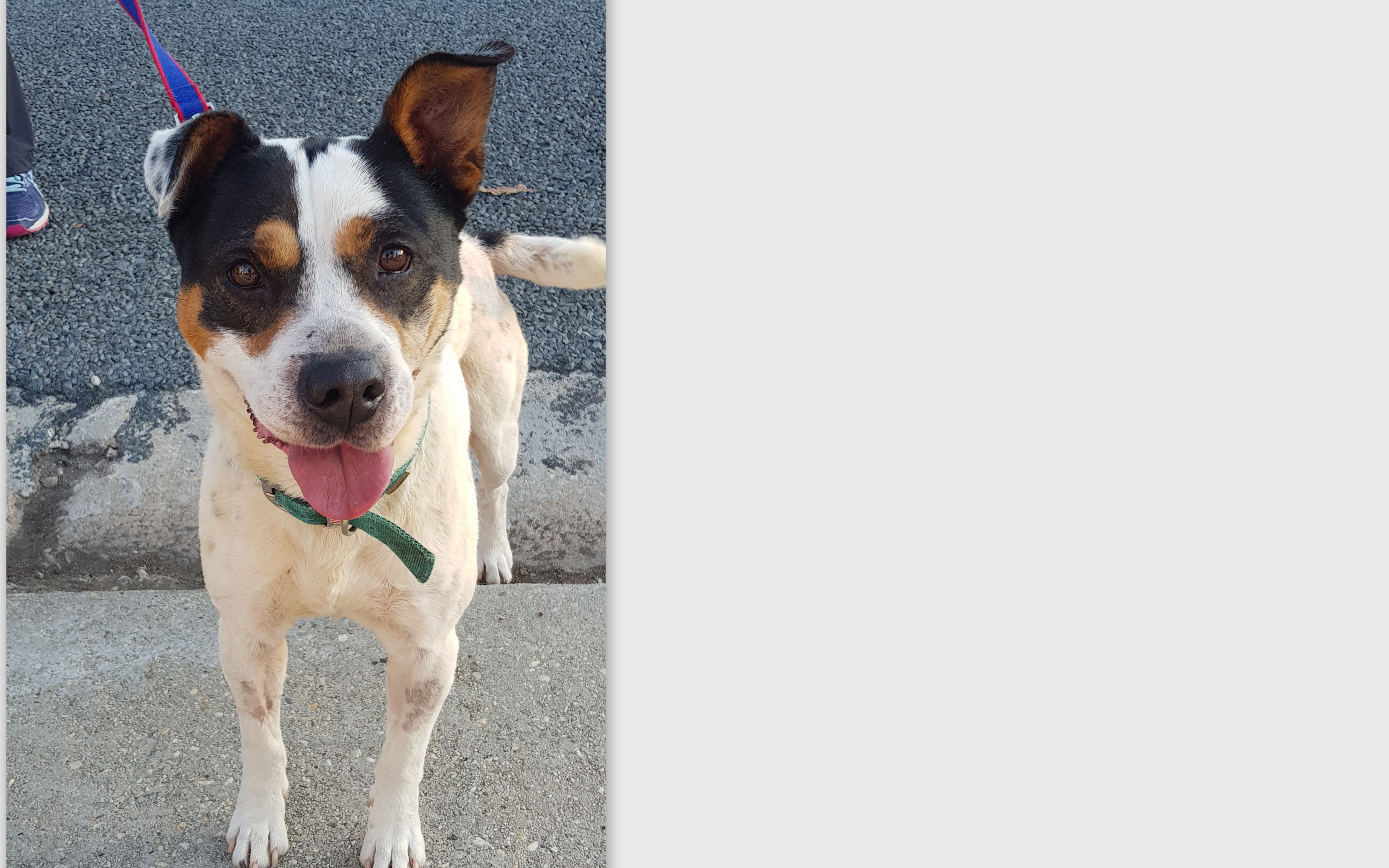 Stevie is a heeler x possible staffy around 3-4yrs old. He looks like he has had a very sad life and he was full of fleas and had half his face hanging off when the ranger picked him up