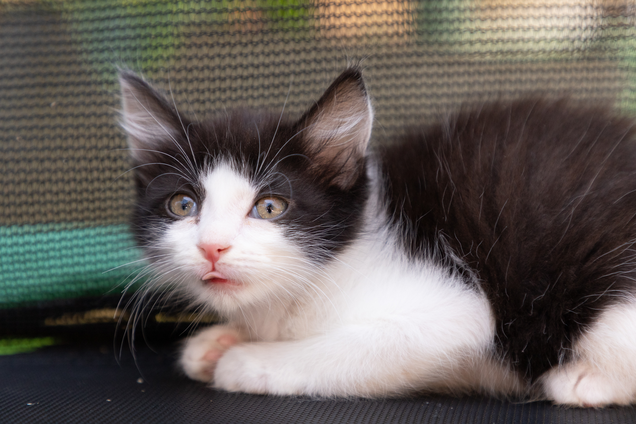 Hi I'm Duke and I love adventure so don't try and tie me down with all those smoochy kisses. I love exploring and seeing what all the fuss is about in just about everything. I live with my siblings Velvet and Scout at my foster carers home. I am a typical kitten but have attitude and need a patient owner to show me that love from humans is AOK and adventure! Did I mention the thing about adventure?