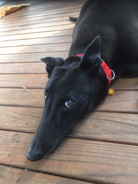 Chalky is a quiet, calm boy around the house. He is happy to be a yard dog for short periods (couple of hours) but prefers the comfort of indoors. At present he has a soft fluffy coat but this will eventually become sleek & black once his old "kennel" coat is replaced. He does pull a little on the lead at first, but settles down once he gets into stride. Chalky's favourite pastimes include standing his feet in a bucket of water to cool off, lying in the dirt & playing with toys & balls. Chalky is quite a big boy & would suit a home with a single adult, couple, or a family with gentle kids aged 8 years plus.