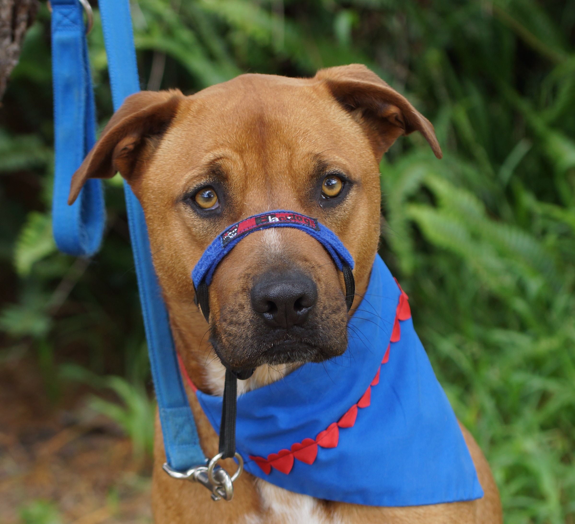 Rynie is a very handsome boy with rockpools as eyes!! He draws you in to his world and in return you will get a big wag of the tail and a wiggle from his hips. Rynie needs a home in which he feels included in family life and one experienced with large breeds. He loves going out on walks and outings in the car. Rynie would be best suited to a home with another canine friend who he can play with, but if he goes to a home where he is not left for many hours a day he would be happy too. Rynie is wearing a harness which we put on all our larger breeds - this controls their walking on lead better. Rynie has been receiving lots of training whilst in foster care and it is essential that this training regime be carried on in his new home.