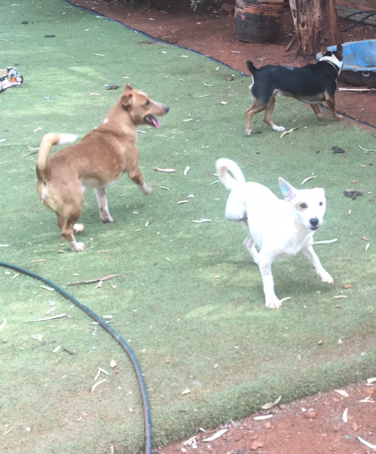 He was rescued in a remote indigenous community in the NT. Camp dogs are well known for enjoying chasing cars, even after they have been injured. So Kevin needs a forever home where he can learn to walk on a lead and learn the social graces of city/suburbia. We have not yet had a Camp dog chase cares away from the community.