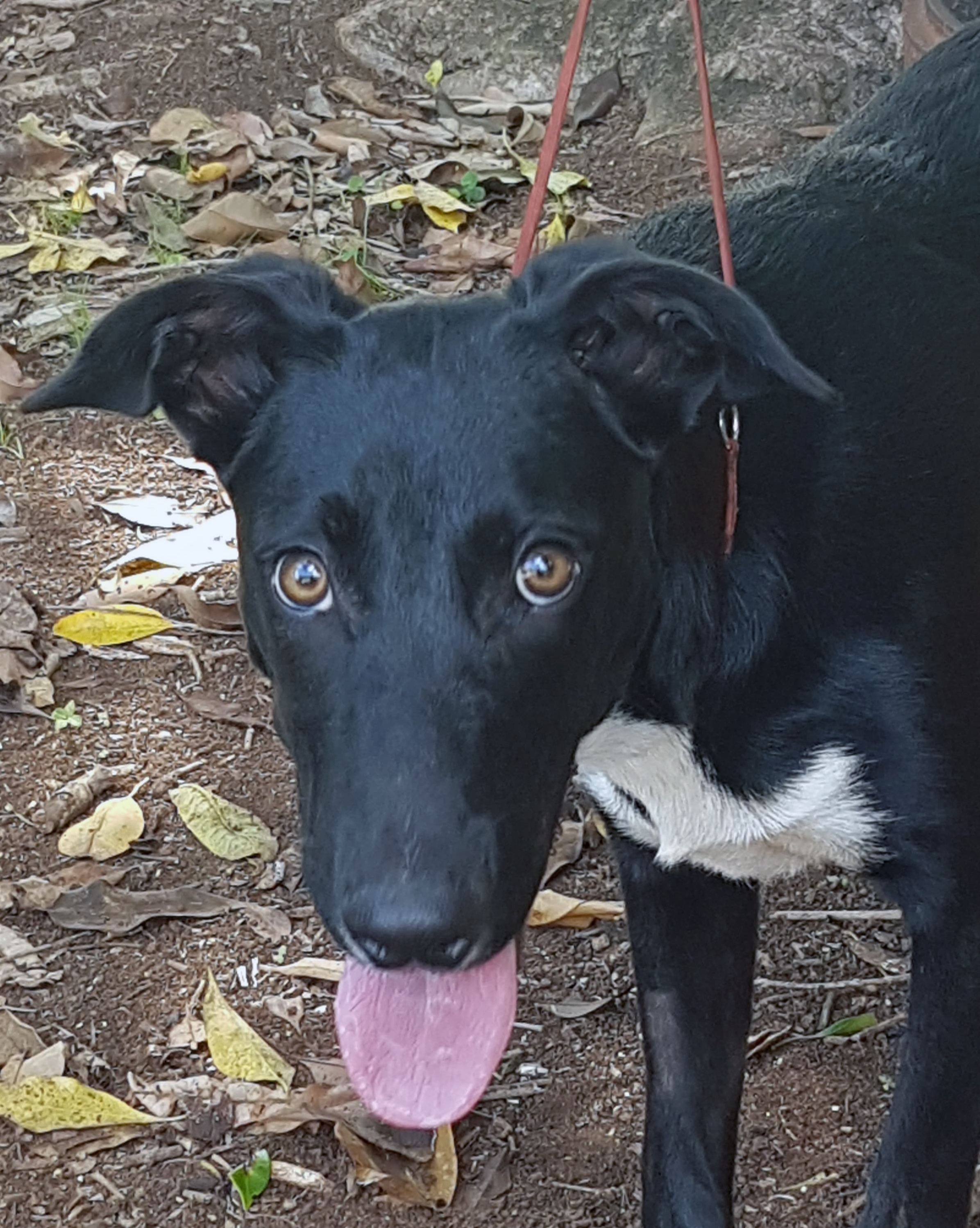 Puppa is approximately 6 months old. He was rescued fromt he street and all efforts were made to find his owner to no avail. His guardian angel asked for our help and here he is. We have no idea what mix of breeds he is but will be a medium size when mature. Puppa is a young gentleman at heart. He is so polite, a quick learner very eager to please. He has already learned to sit, drop and shake hands. Very gentle boy good with chooks, geese, cats and small dogs and loves to be with kids. In fact he is extra caring towards little kids and just loves to sneak on the beds. Puppa is goign to need a home where he is totally loved with gentle understanding, positive training and lots to keep him occupied and stimulated. He is just a pup, but will be an incredibly loyal, wonderful companion for many years to come. All his vetwork is completed and includes desexing, microchip, vaccinations, worm and flea treatment. If you're interested in adopting this lucky boy please email arcatd@hotmail.com