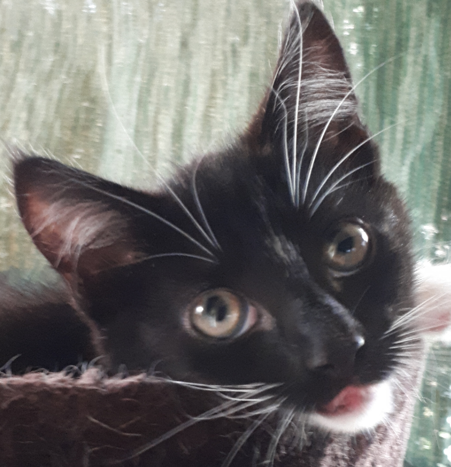 Jeddah has come such a long way since coming into care with her two brothers. Overshadowed a bit by her "attention seeking" brothers, she was happy to be in the background. Now she has realised what she has been missing out on and loving getting her share of cuddles and kisses. Jeddah is growing in confidence every day and is very adventurous and fun loving. Her favourite things are playing chasing games with her brother Astro, playing with cat toys, eating, sleeping and surveying her world from the very top of the cat tower. Jeddah starts purring as soon as you pick her up. She is currently fostered with other adult cats and "cat friendly" dogs.