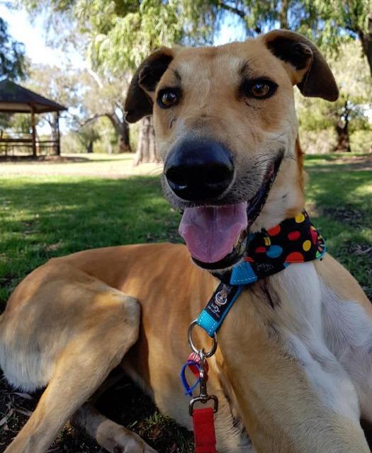 Sox knows his name, sits nicely on command and takes treats gently from your hand. Even though Sox is a big boy he's not a bouncy dog but is nice and placid, so shouldn't be too full on for children. Has fairly good recall in low distraction environments, is great on lead however is still working on his house training and is beginning to learn the prompts which remind him to pee outside. Sox doesn't know what toys are for, but loves sniffing out treats from the toy box. Sox does get quite animated if he sees kangaroos! He loves to lean in and be close to people and is just the loveliest dog.