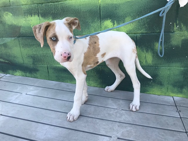 Hello, my name is Heather and I am a lovely female 3 month old Great Dane mix. I am a very special girl and I am deaf. I will need a home that will adapt to my needs and I am already responding to basic hand signal commands. I may be small now, but I will grow to be a BIG girl! I hope my new family feed me a good quality puppy food to support my growing body and will provide me with regular moderate exercise. I am a sweet heart and will make a very amazing new family member. I am desexed and microchipped. Hope to meet you soon.