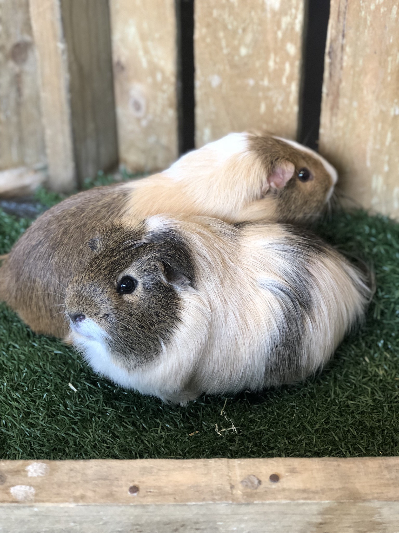 Our rabbits and guinea pigs are fed Showmaster rabbit and guinea pig food, and quality oaten hay, it is best top continue with this food. Always ensure there is plenty of water, fruit and veg available