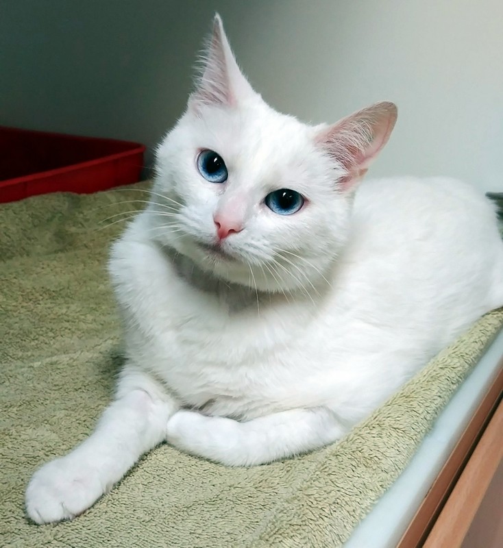I am also deaf, so please be gentle when approaching me as I won't hear you coming! This, along with my beautiful white fur and pink skin will mean I'll need to be an indoor only cat.