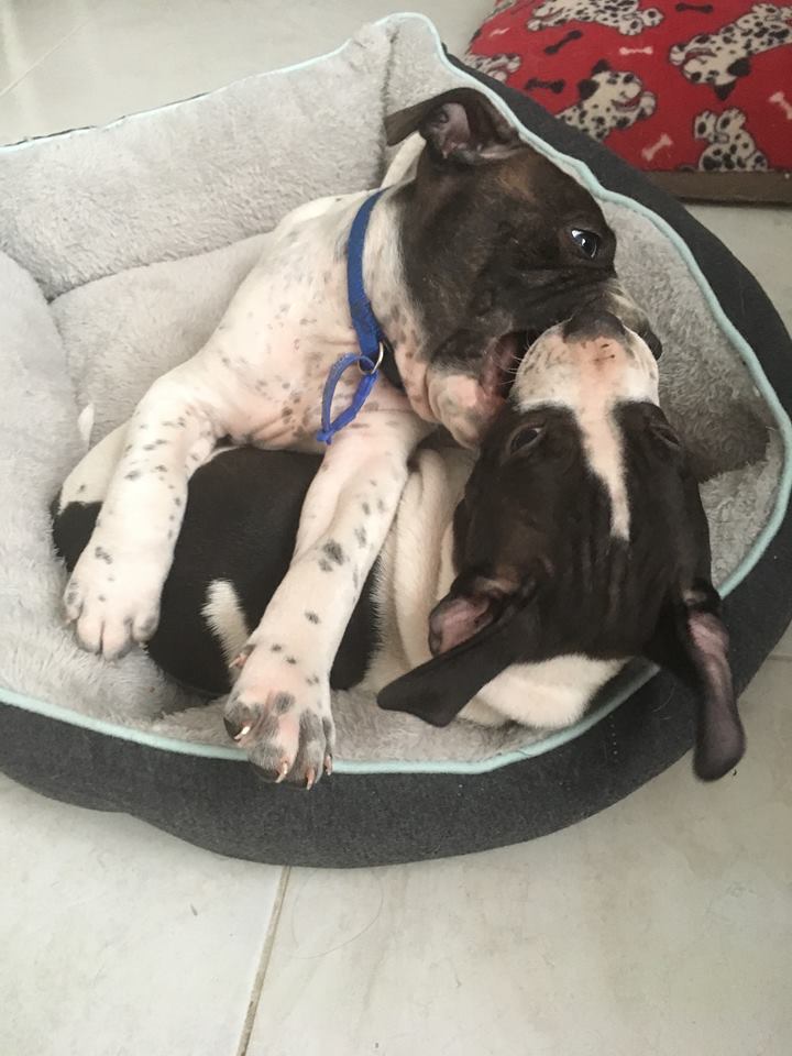 Meet Louie, or as we call him at our house, King Louie. Just like his namesake from the jungle book, he thinks he’s the coolest pup in this suburban jungle, and definitely a VIP. Louie is an 8 week old Staffy x Mastiff pup who is an absolute ball of energy, like most puppies his age, and next to playing with his brother, Roscoe, he loves a good game of tug of war, rope chase, or even a playful snarling wrestling match.