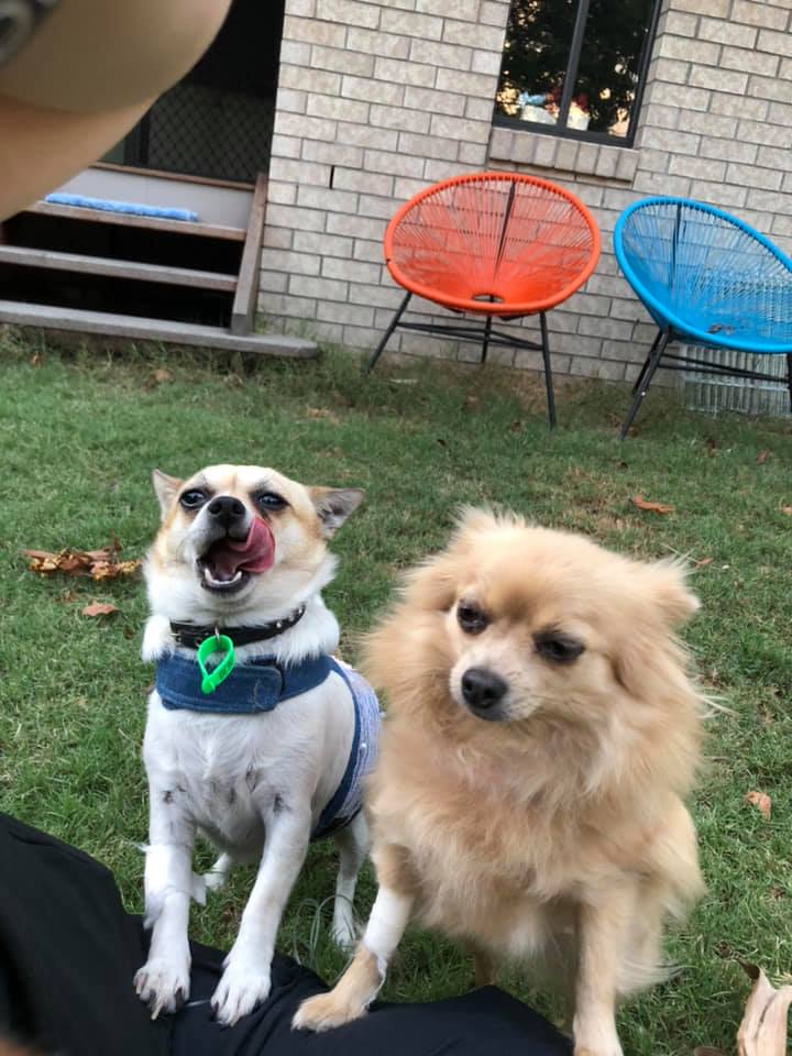 Now my friend Baby Bear she is a bit of what I call a Diva Princess, she is a Pomeranian x Chi , she is 4 and teeny, just over 2kgs and thinks she is the boss of me, she can be bossy towards me sometimes but then next minute she is cleaning my ears, so I really do love my little Diva friend, we sleep together and do lots together. We lived with a cat and I used to play with him all the time, so dog friendly cats are ok as long as they know we will take time to get to know them. We will bark at them though, so if that's ok it might work out. We would be best as the only dogs in our forever home, My Diva friend is bossy with other dogs and she is a typical Pom, she needs to voice her opinions, but give us lots to do and we will settle down. But if you are looking for quiet dogs don't pick us, Miss Diva is very Pom in nature and they like voicing opinions.