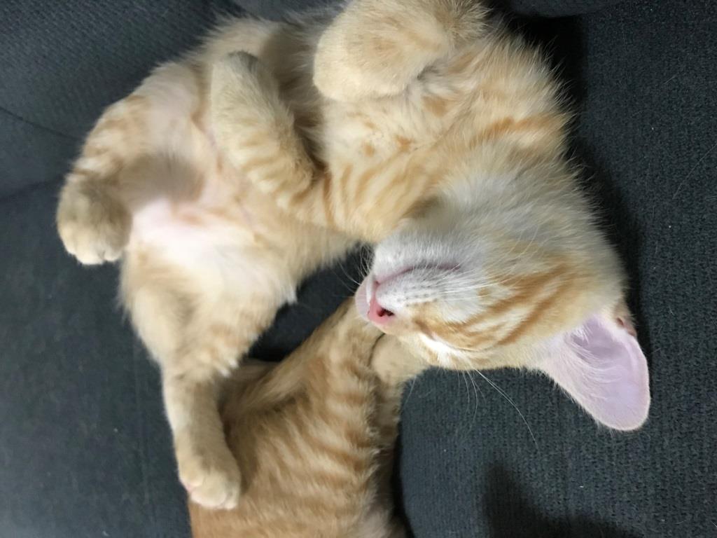 I REALLY like to sleep; I am best sleeper in the world I can sleep through all of my brothers and sister fighting right next to me. Speaking of sleep, I sleep in the cutest positions, it is normally I am hanging off something like the couch, cat tower another cat, I am not picky.