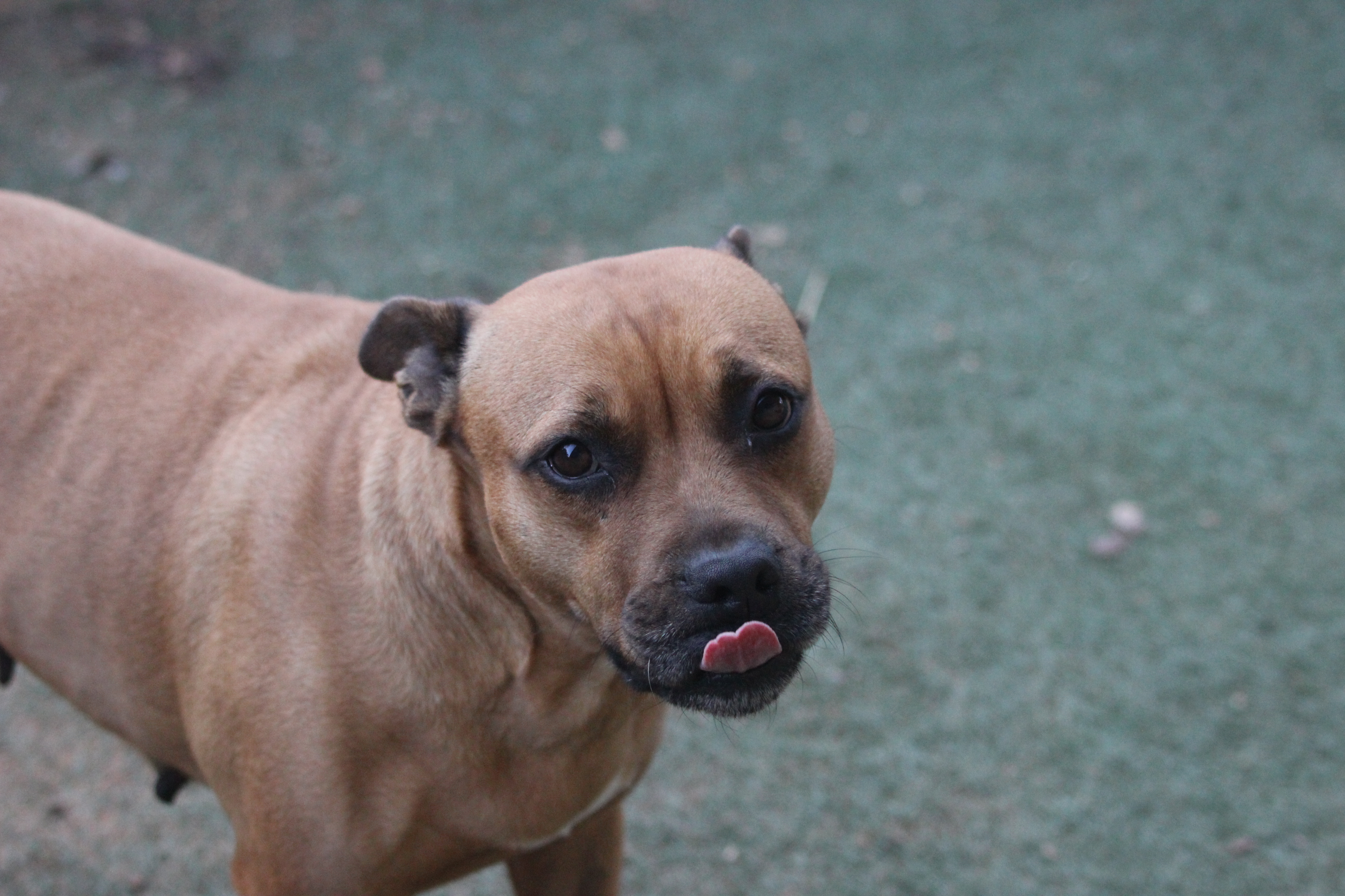 This girl is one of the sweetest staffies we have had in care. She is fantastic with everything. She loves people, dogs, kids, chasing the ball, walks. the car, being inside.. and loves cuddles.