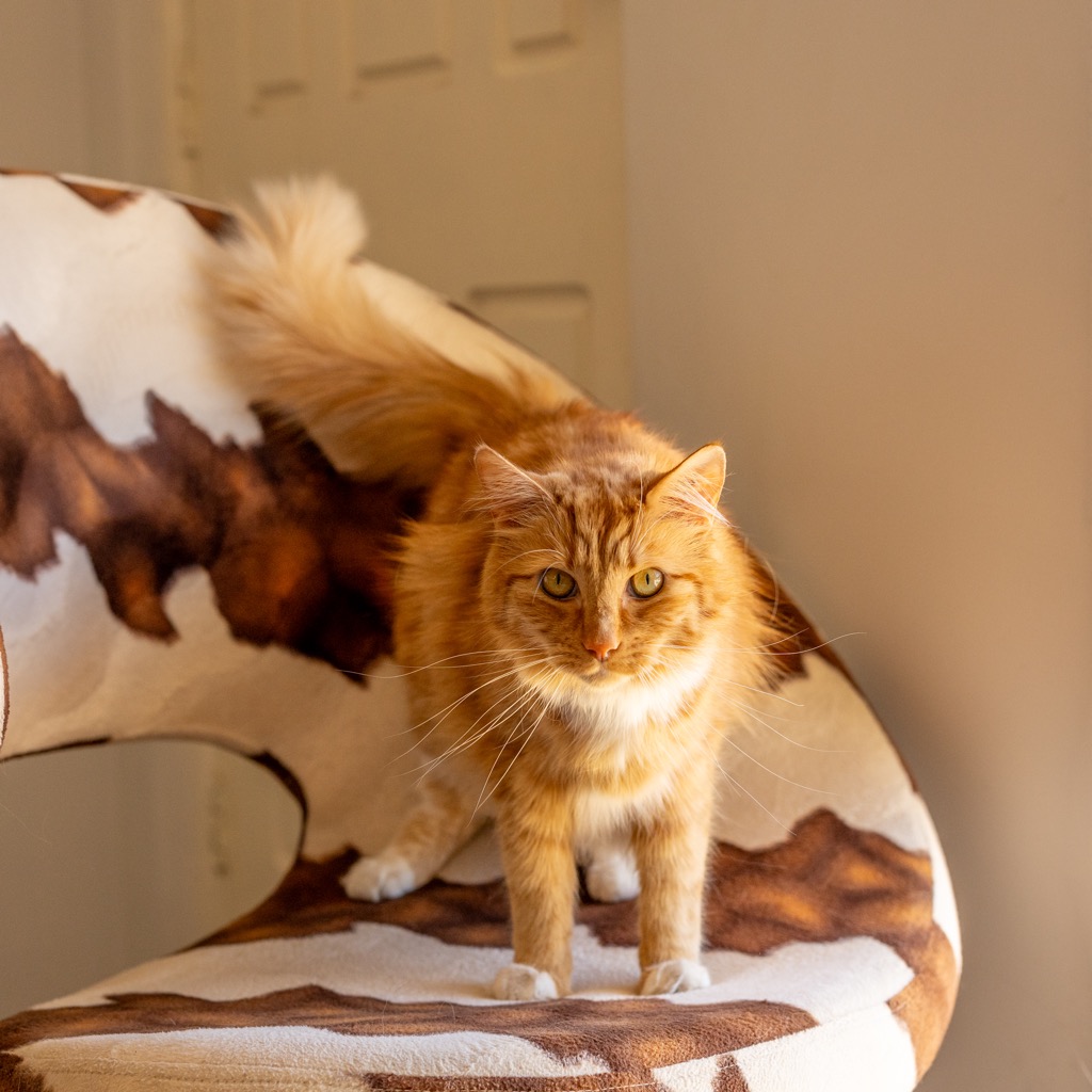 His favourite spot is under a blanket. During the day he likes to watch out the window and would love to have a secure outside area where he can have the breeze in his hair and watch the world go by.