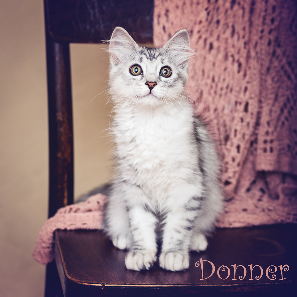 Remember our cute little reindeer kittens, Dasher and Dancer and Donner and Blitzen? Well they have all found new homes except for the beautiful Donner.