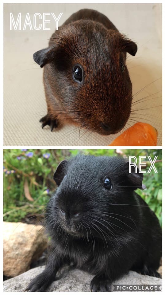 Rex came from a backyard where guinea pigs were breeding out of control and there was in excess of 120 already. Mia’s mum came from the same backyard, and not long after arriving in foster care, little Mia was born!