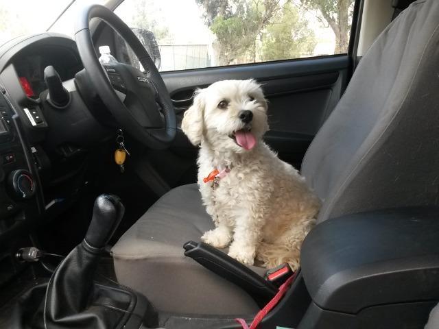 Abby is a well adjusted dog who likes to join you on the bed and be an important part of your life. She loves running under the hose so when you are watering your plants you can have some fun with her too. She cannot live with cats or squeaky toys, yes, that's right, she HATES squeaky toys and loves chasing cats and not in a fun way! Two of her favourite things are stealing your socks and burying them in the garden, and, taking herself for a walk if the gates are open. The first one not really harmful to anyone's health, depending on the state of your feet, but there are way too many dangerous things for a dog who walks alone. Sadly Abby's Dad died recently so Abby is looking for someone to spend her retirement with. If you want a non-shedding, happy little dog Abby is the girl for you!