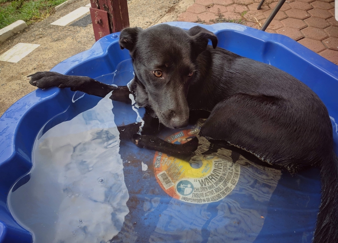 I love playing with squeaky things, playing with other active pups, puzzles to keep me thinking, going new places, splashing in my pool and chasing balls and getting treats and pats for being a smart girl. The labrador in me makes me inclined to chase lizards and toads and chew interesting things I find but I don't chew furniture! I really like food and will show off how smart I am for a treat like; come, sit, leave and stay for a while, I'm sure I can learn more though! I like snuggles, pats and don't mind kids either. I like new things and need to go on walks and have interesting play toys to keep me busy between napping and swimming on these hot days otherwise I make my own fun with what I can find.