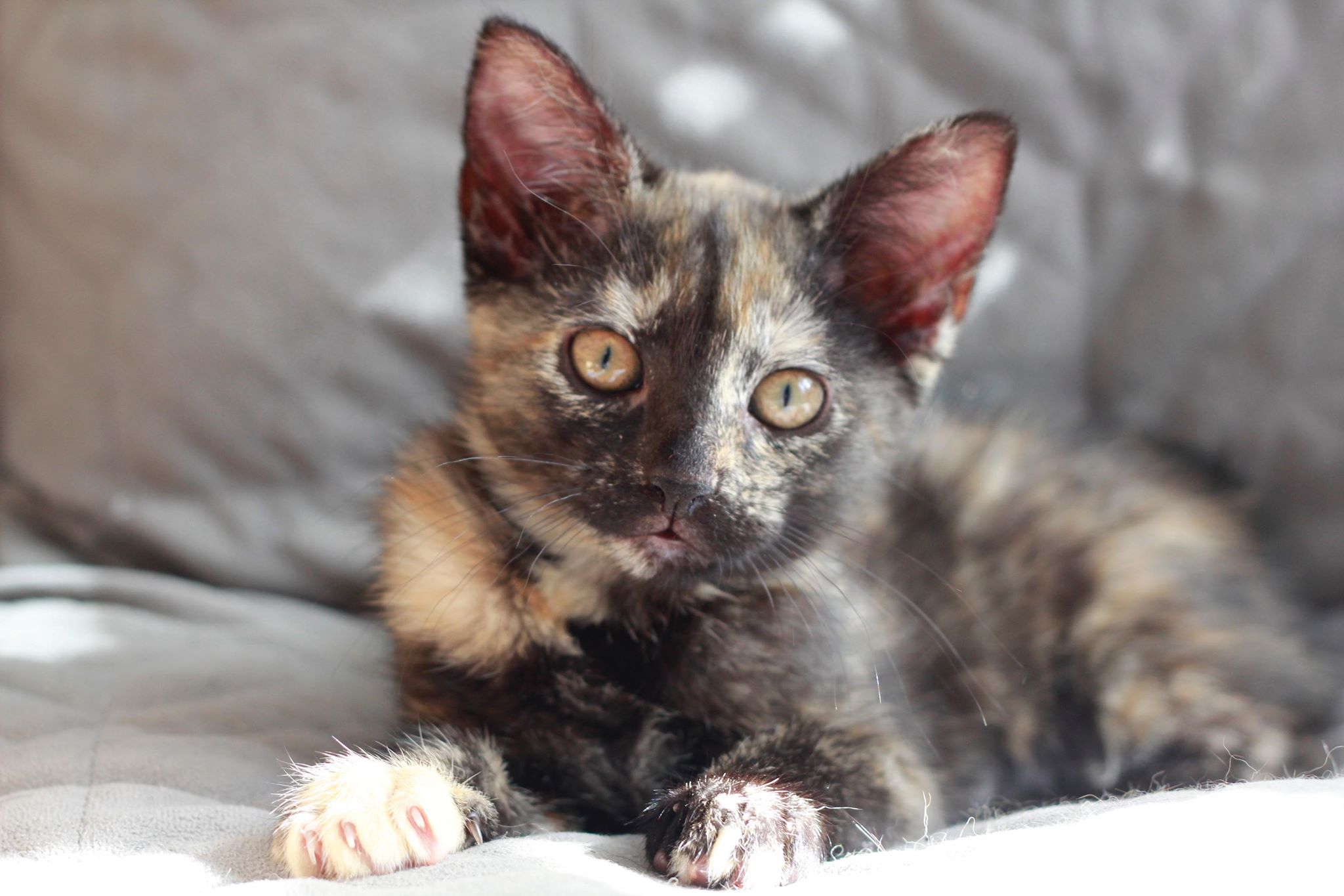 She is a small kitten but big on personality with lots of ginger patches in her unusual torti colouring.