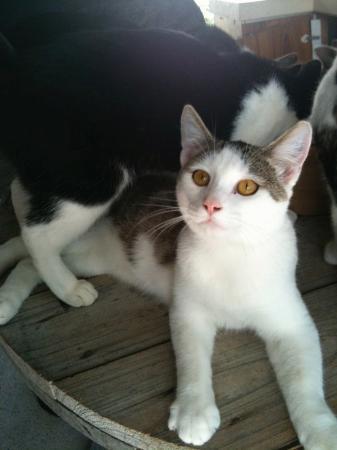 Johnny was born 7 october 2009 and is a handsome white male with grey tabby markings. He was named after johnny depp because if you aim a camera at him the little devil goes into poses. He just loves having his photo taken. Johnny is a real little character. He gets on well with other cats and dogs. Johnny has been neutered, vaccinated and microchipped ready for his new forever home. Johnny was adopted in october 2010 but returned to the shelter because of his dad's allergies. This is what his family wrote about him - "we adopted johnny from the brisbane valley cat shelter in october and took him home to our family of two children and a dog. He was a little frighted at first but settled in beautifully. Johnny loves a good pat and was purring all the time. Unfortunately due to allergies in our family we regrettably had to return him to bvcs. Louise has been very understanding and johnny was happy to be reunited with his cat family. We hope he finds a new loving family soon as he is a very affectionate cat and deserves to be number one. "