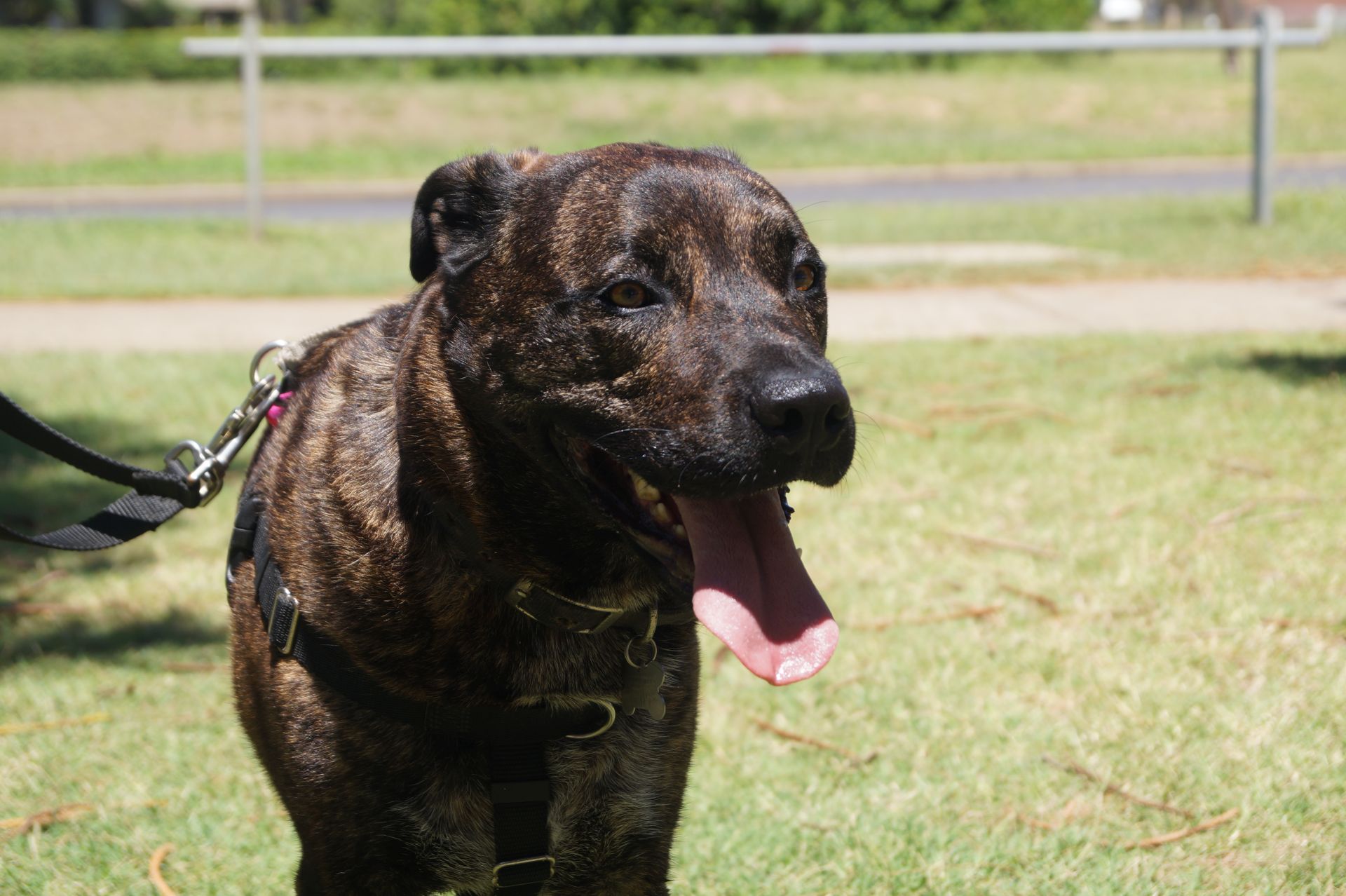 He walks really well on leash, and doesn't get all wound up about dogs he meets out and about, be they big or small, polite or rude. He has a boyishly exuberant, sometimes over zealous style of play offleash though, or when living with another dog, so would do best with somebody comfortable managing dogs with big personalities if sharing with another canine, preferably a female his size or larger. He's no rampaging athlete though so is happy to chill out if they are.