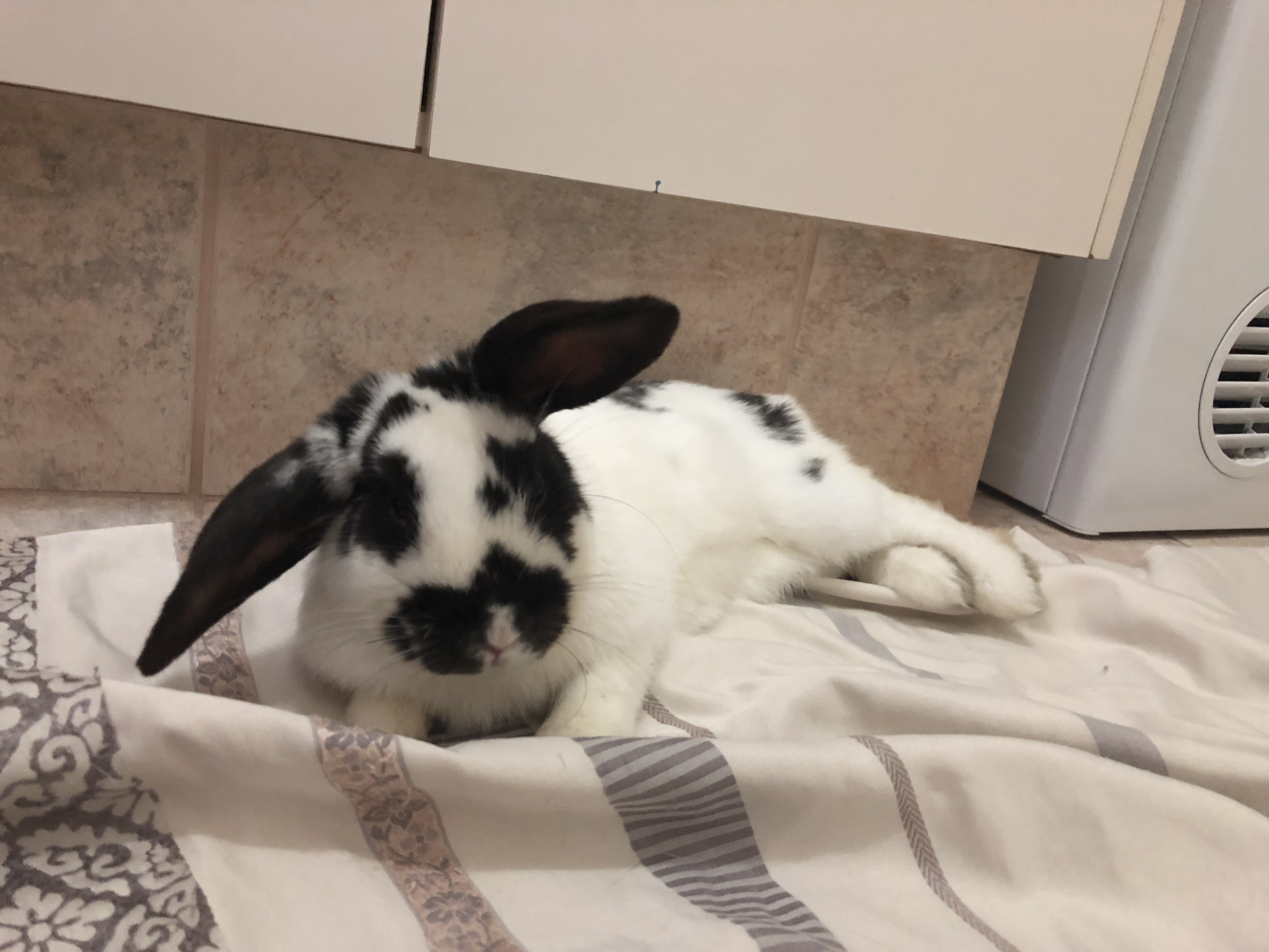 Gina is the sweetest little girl and has super soft fur! She does the cutest binkies and a very friendly bunny. She loves a pat and a good head rub, and as with most bunnies, she isn't a huge fan of being picked up.