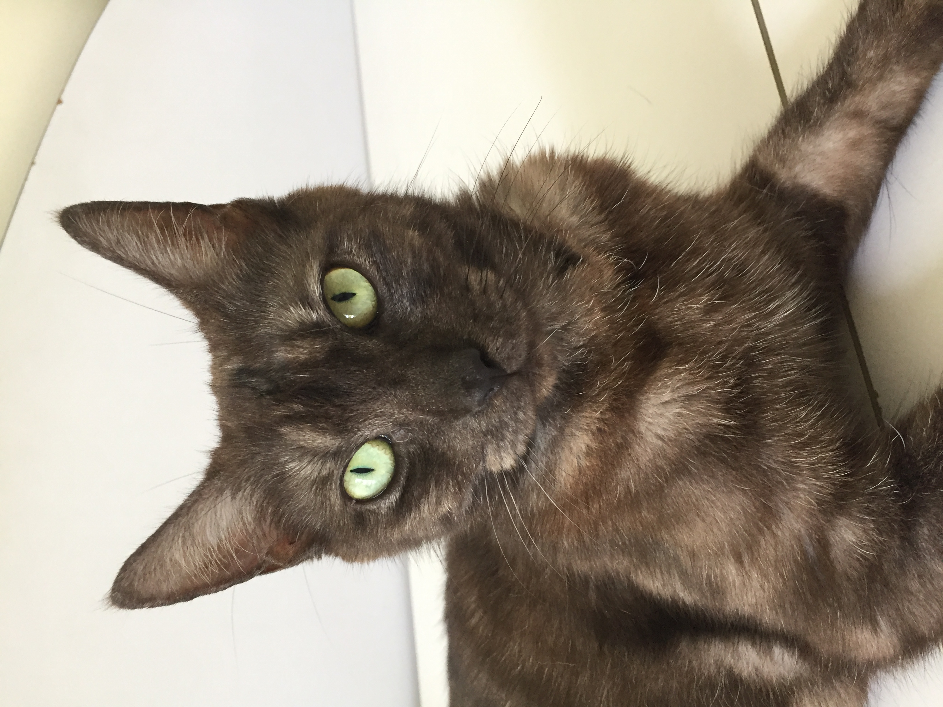 She has a beautiful soft black/grey coat with white fluff underneath. She spends her days stretching out on top of furniture observing her surroundings. Gets along with children, other cats and isn’t phased by dogs. Has been a loving mum and now is looking for her forever home.