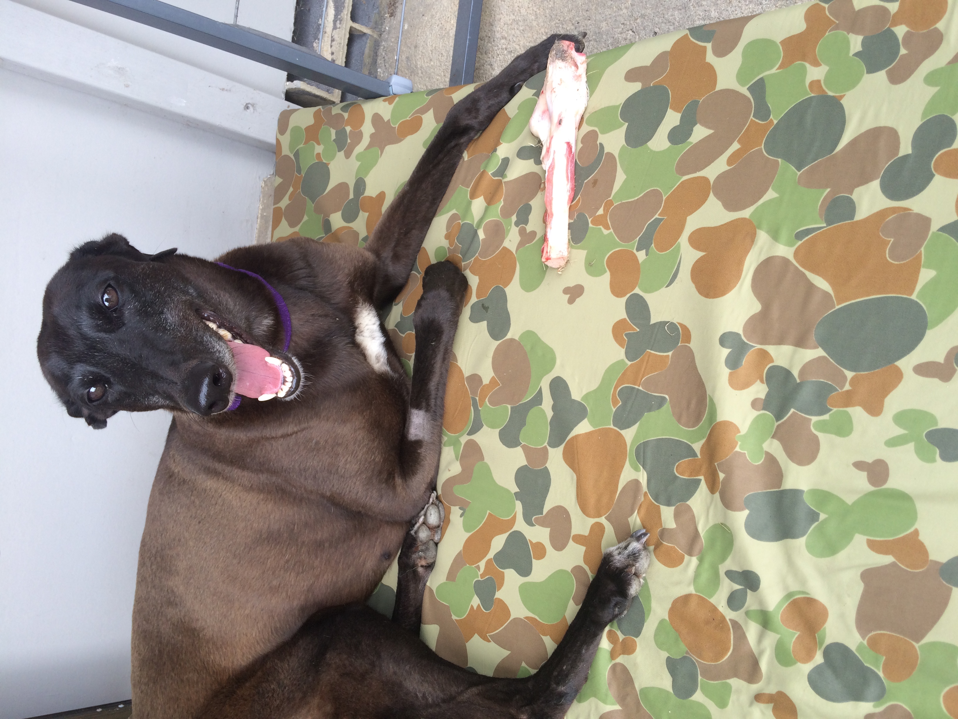 She walks well on lead and is settling in well into pet life. She is acing toilet training and sleeps until her foster Dad has to get up for work, he lets her out, and then she is back in snuggled up again. Her foster Mum is so sure that she would sleep longer.