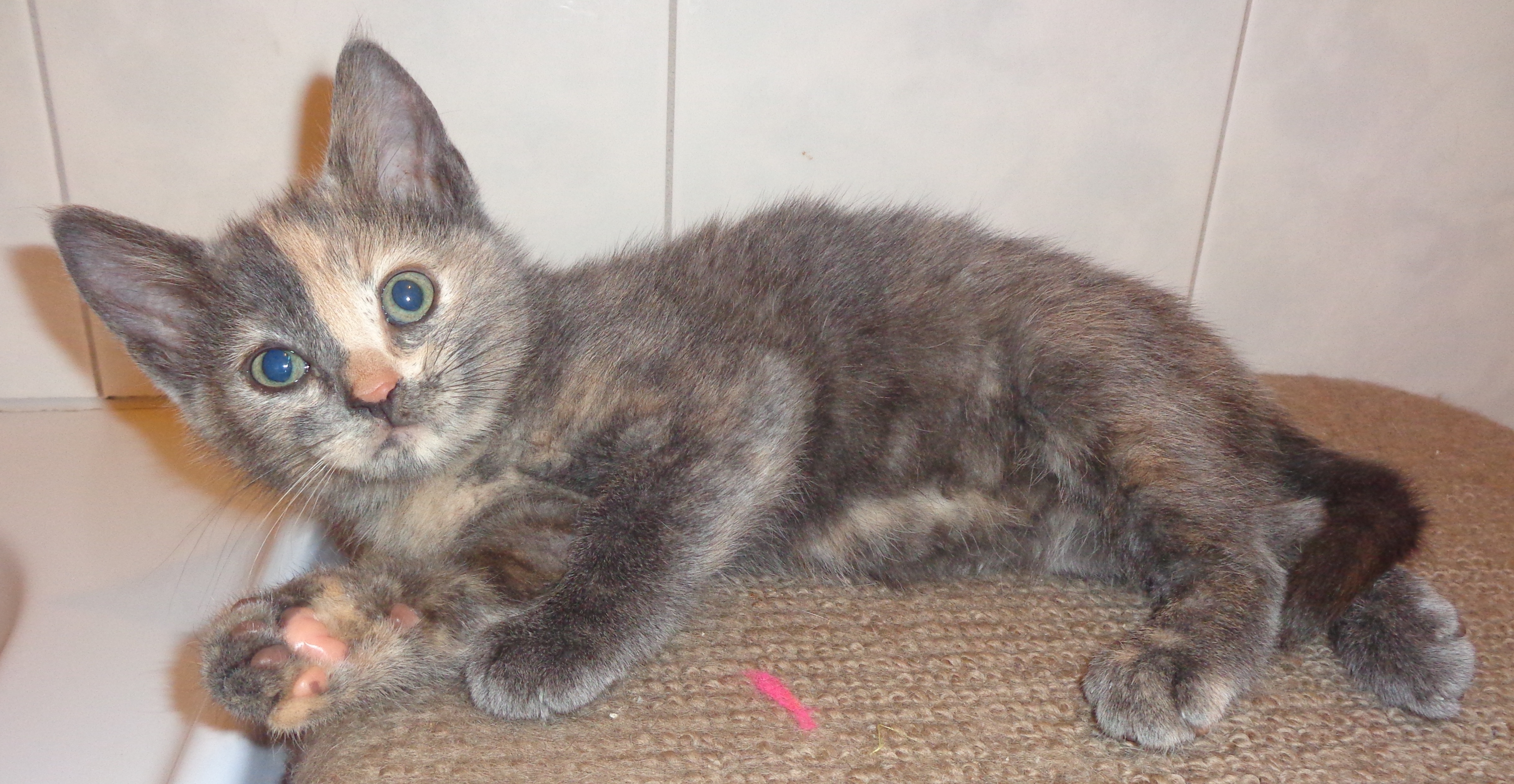Hi I'm Marble. I came into care with my sisters, Lotti and Pebbles and our brother Barney. My sister Lotti and I are very close, we love playing together and cuddling up and grooming each other. We would love to be adopted together if possible, but we can be adopted on our own. We were found in a garden at an aged care facility and taken to the local vets who then contacted Rescue Me Whiskers & Paws. I am initially a quiet little girl who sits back and watches. Once I am comfortable I am a friendly, playful and sweet little girl, who is always waiting to run and play or have snuggles and kisses and boy do I purr! I love to wrap around your feet for attention. I happily live in foster care with other cats/kittens, dogs and my big and little foster carers. I'm an affectionate, super playful and cuddly kitten, who will make you smile non stop. I love to lay on your lap and have ear, chin and belly rubs (belly rubs are the best!). Or if your busy I'm happy to follow you around the house supervising what your doing. I am an INDOORS ONLY kitten, but I love it best there because I feel safe and love being near my family. I will need a special home with someone who can give me lots of love, understanding, time and patience to adjust to a new environment and when settled I will give lots of love and kitty cuddles.